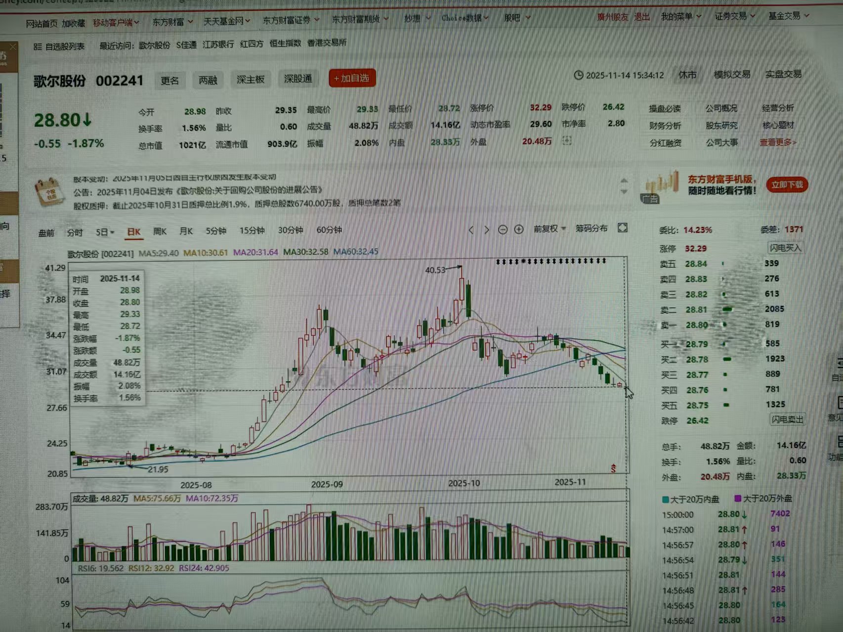 闲人长年累月每日不断在江吧发贴不可思议,自认为研判股票年线月线为强项独一无二,请问闲人公认的心头股歌尔赚钱了吗?