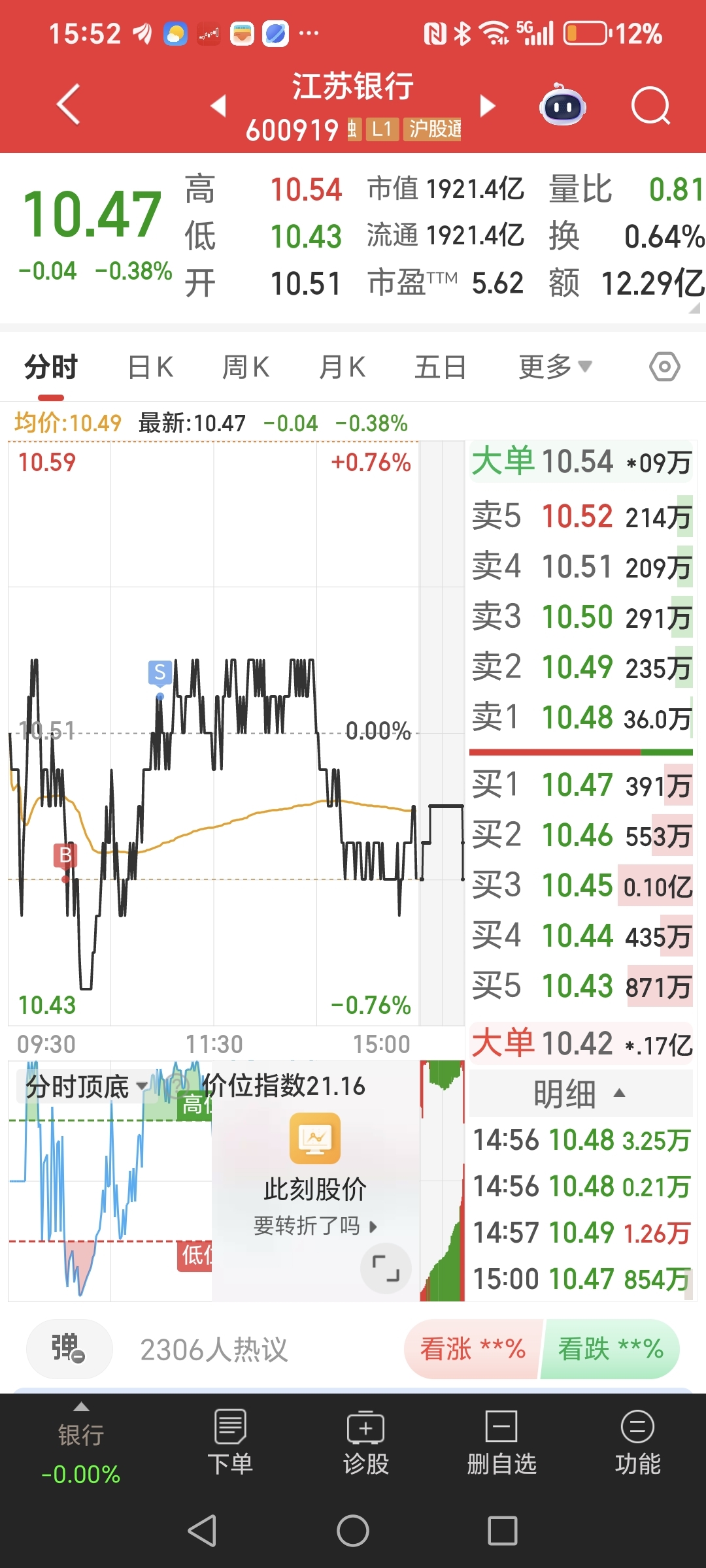 上午10.47买入/10.53卖出