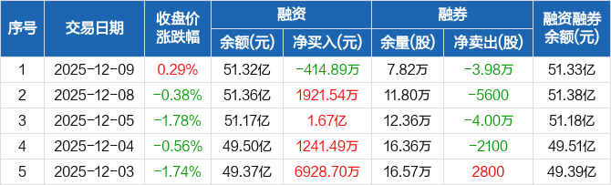 江苏银行:融资净偿还414.89万元,融资余额51.32亿元(12-09)