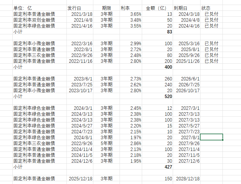 江苏银行从2025年起进入还债券高峰期。如果近期这150亿债券的发行即是2025
