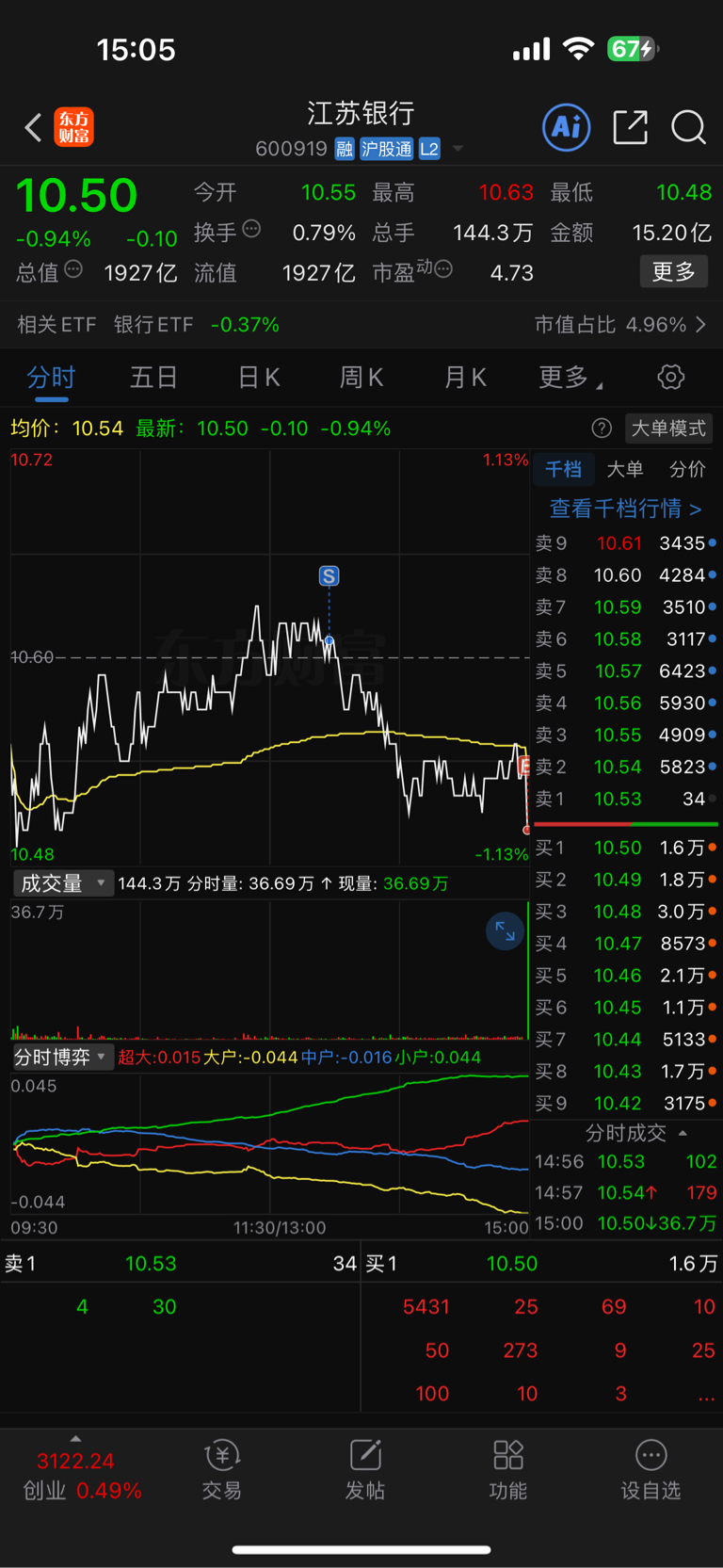 $江苏银行(SH600919)$ 今天t的不错,晚上加鸡腿