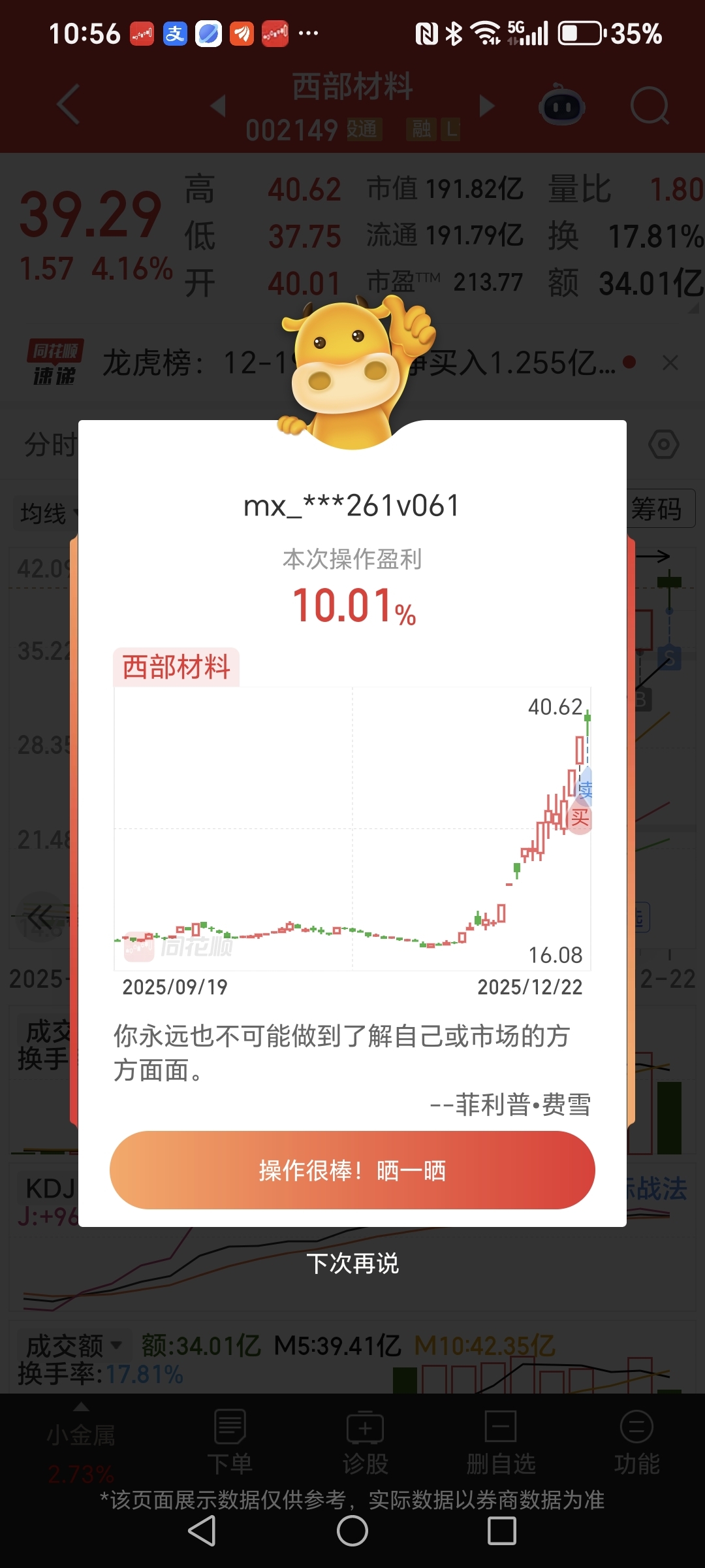周五买的西部材料,挣了10%趋势向上