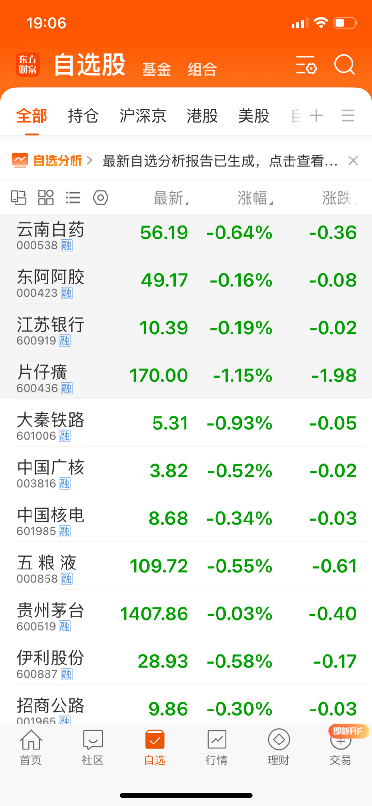 自选股里没有一只红的