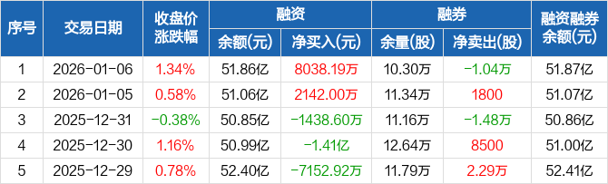 江苏银行:融资净买入8038.19万元,融资余额51.86亿元(01-06)
