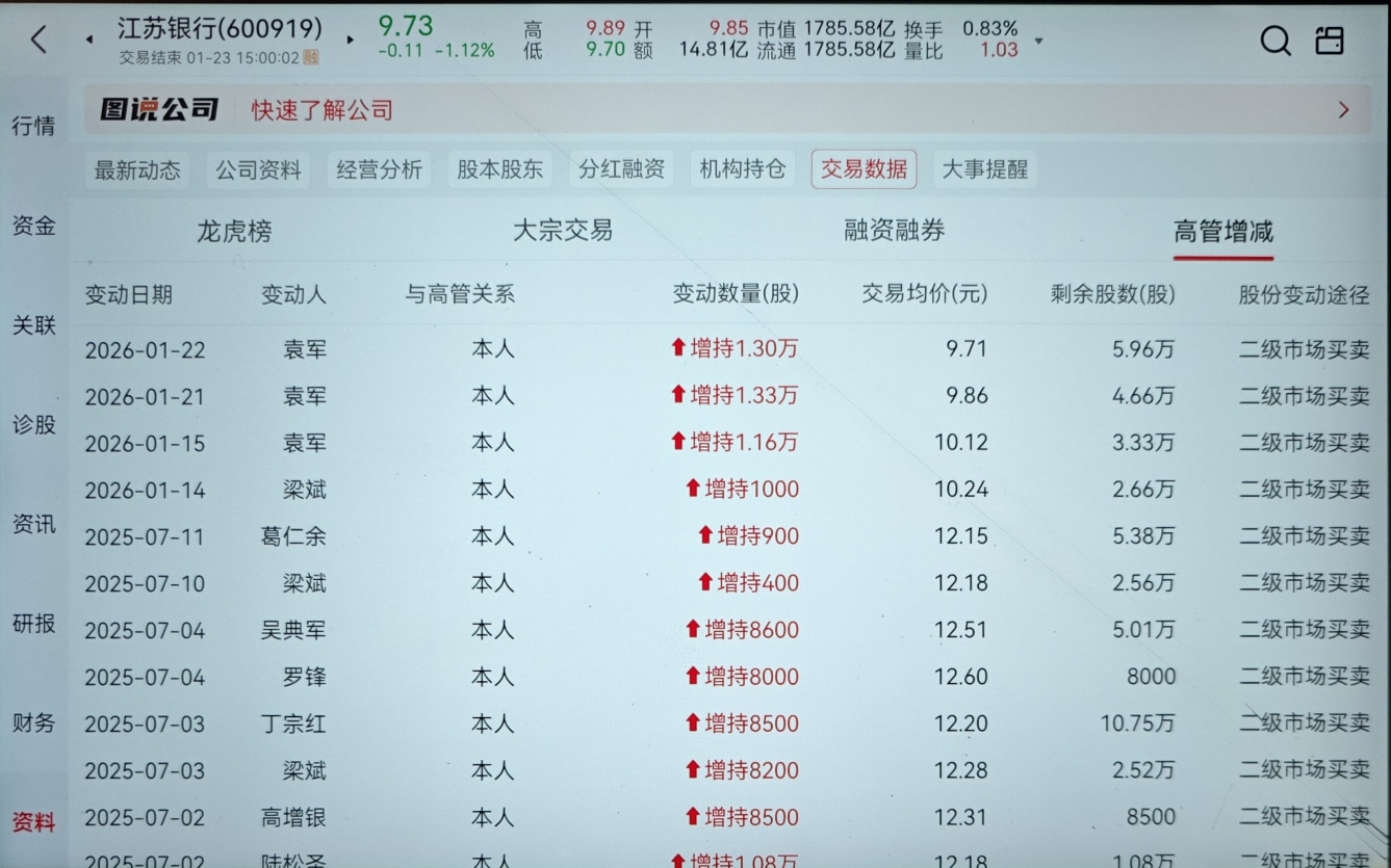 $江苏银行(SH600919)$ 高管都增持了!!!为何还要跌呢???