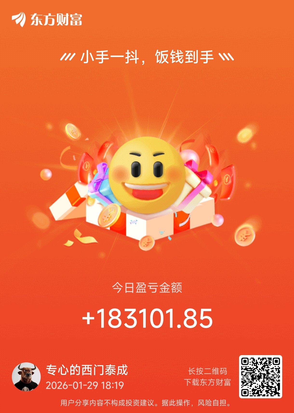 温馨提示: 1.根据《证券法》规定,禁止编造、传播虚假信息或者误导性信息,扰乱证券市场;2.用户在本社区发表的所有资料、言论等仅代表个人观点,与本网站立场无关,不对您构成任何投资建议。用户应基于自己的独立判断,自行决定证券投资并承担相应风险。《东方财富社区管理规定》