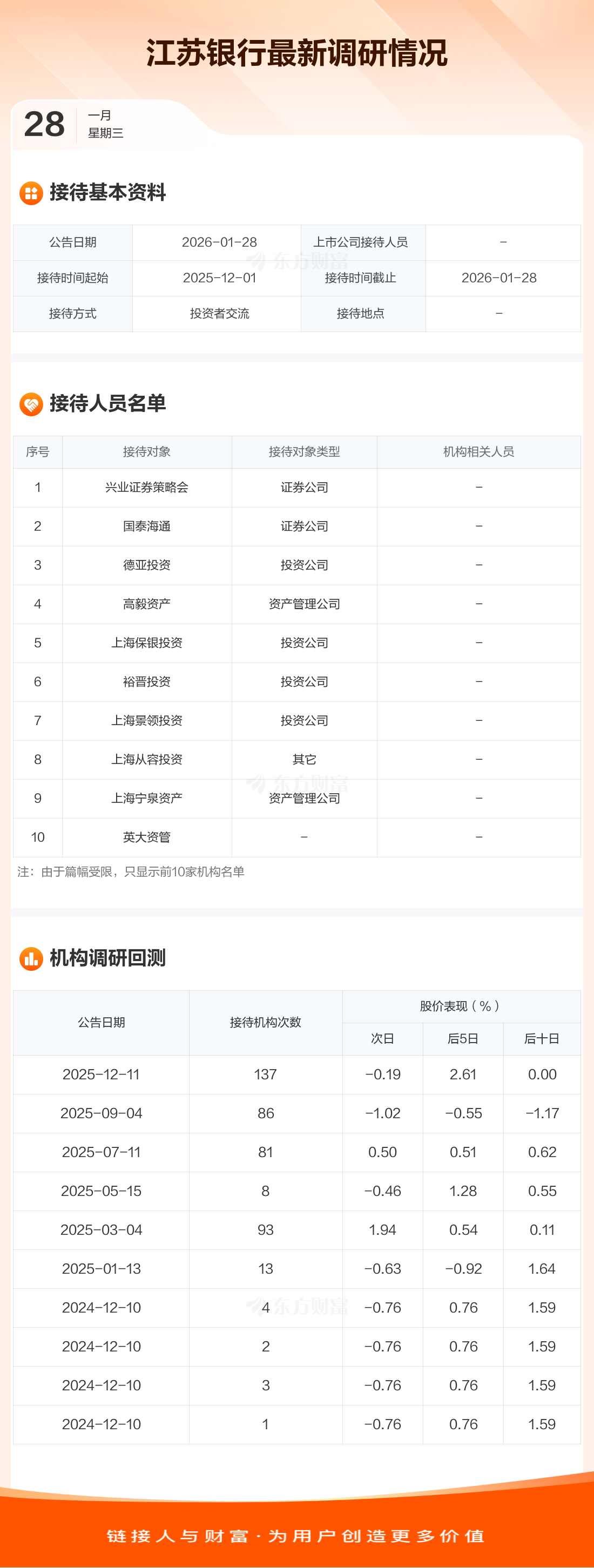【调研快报】江苏银行接待兴业证券策略会等138家机构调研