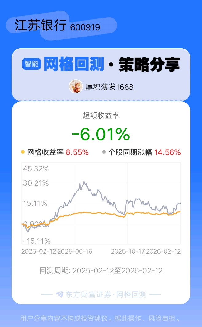 #条件单交流# #网格交易晒单#我使用网格交易回测了最关心的个股,朋友们走过路过看看我的收益~$江苏银行(SH600919)$