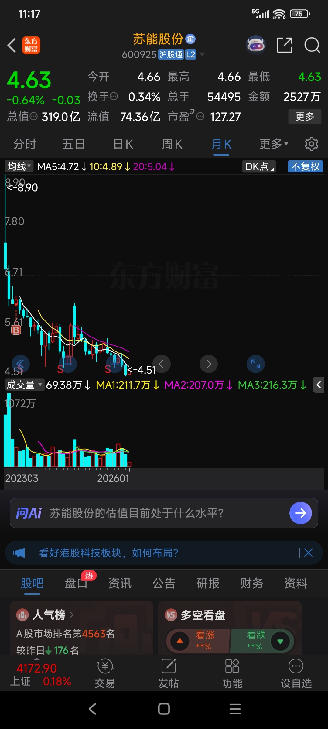 $苏能股份(SH600925)$ 这只股票,上市开始,一路下跌