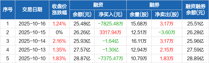 杭州银行:融资净偿还7825.48万元,融资余额25.48亿元(10-16)