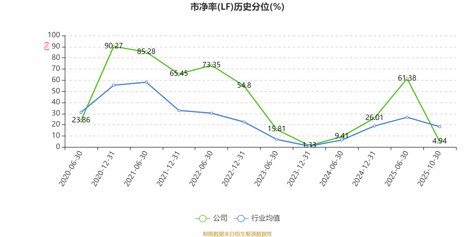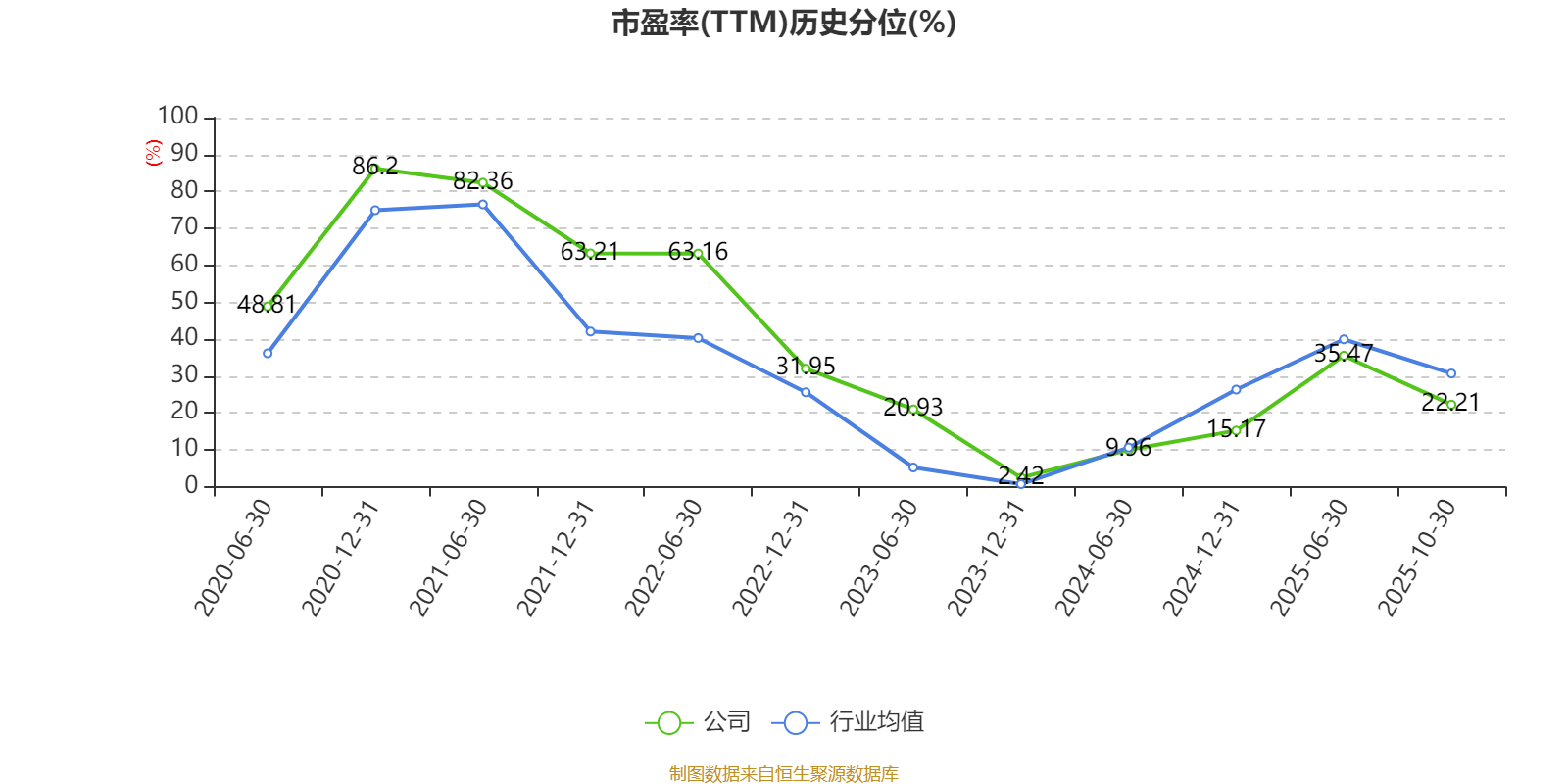 市盈率、市净率为负时,不显示当期分位数,会导致折线图中断。
