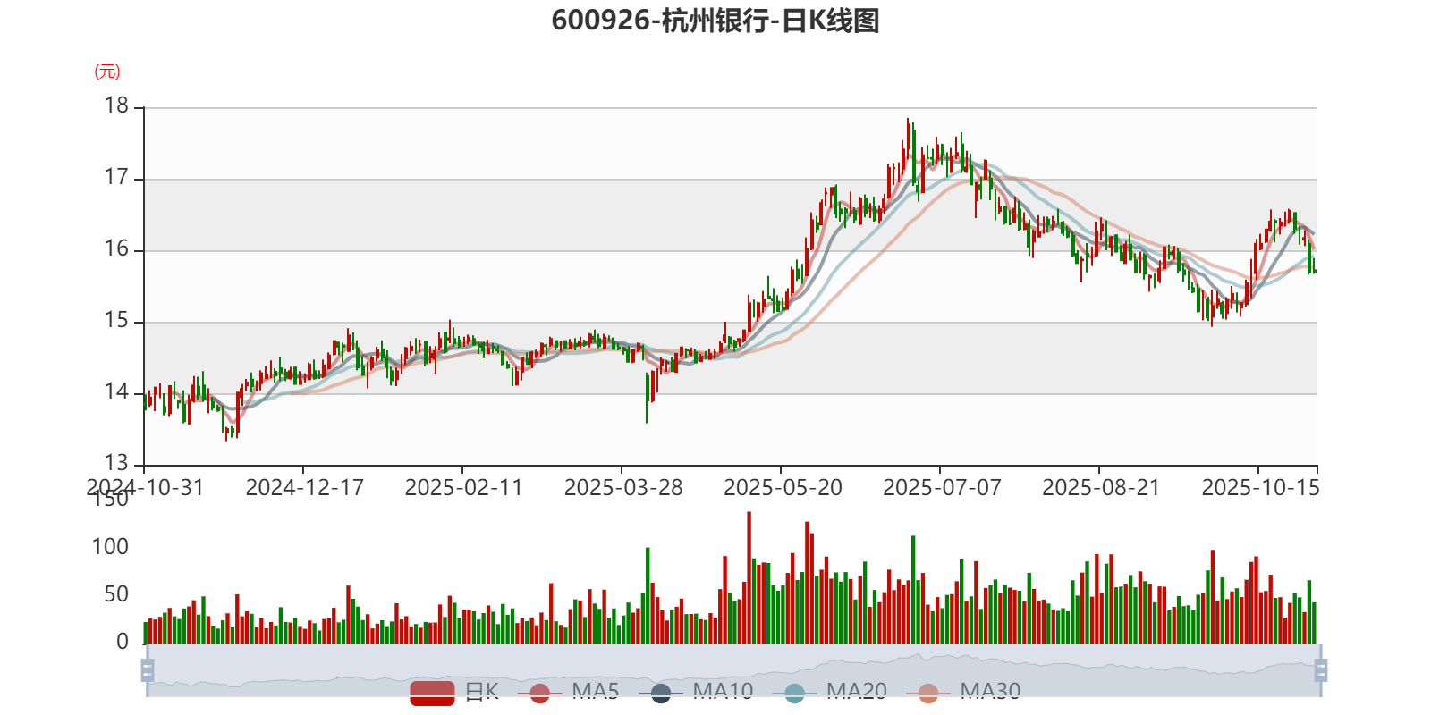 以10月30日收盘价计算,杭州银行目前市盈率(TTM)约为5.99倍,市净率(LF)约0.7倍,市销率(TTM)约2.94倍。