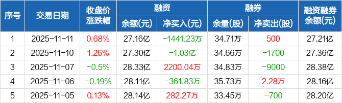 杭州银行:融资净偿还1441.23万元,融资余额27.16亿元(11-11)