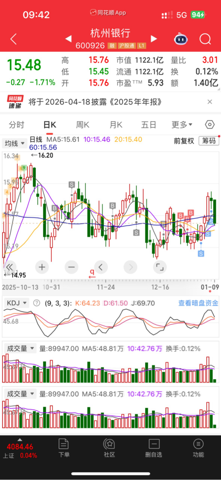 $杭州银行(SH600926)$ 3字头回来