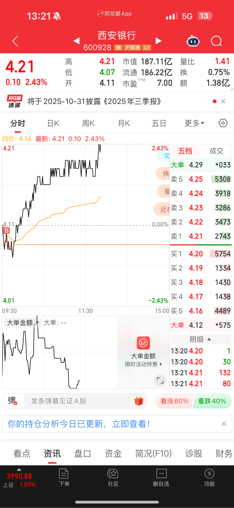 $西安银行(SH600928)$ 用实际行动看好西安银行三季报。早上买了10万股。