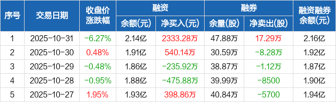 西安银行:融资净买入2333.28万元,融资余额2.14亿元(10-31)