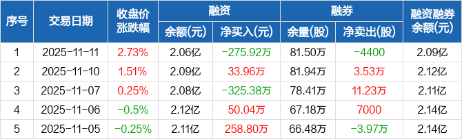 西安银行:融资净偿还275.92万元,融资余额2.06亿元(11-11)