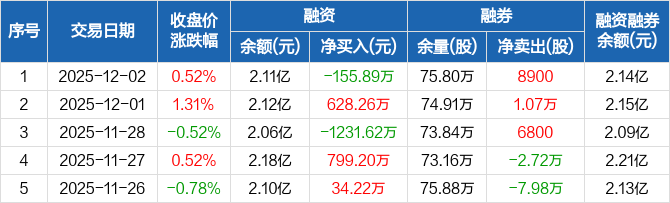 西安银行:融资净偿还155.89万元,融资余额2.11亿元(12-02)