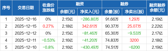 西安银行:融资净偿还286.8万元,融资余额2.15亿元(12-16)