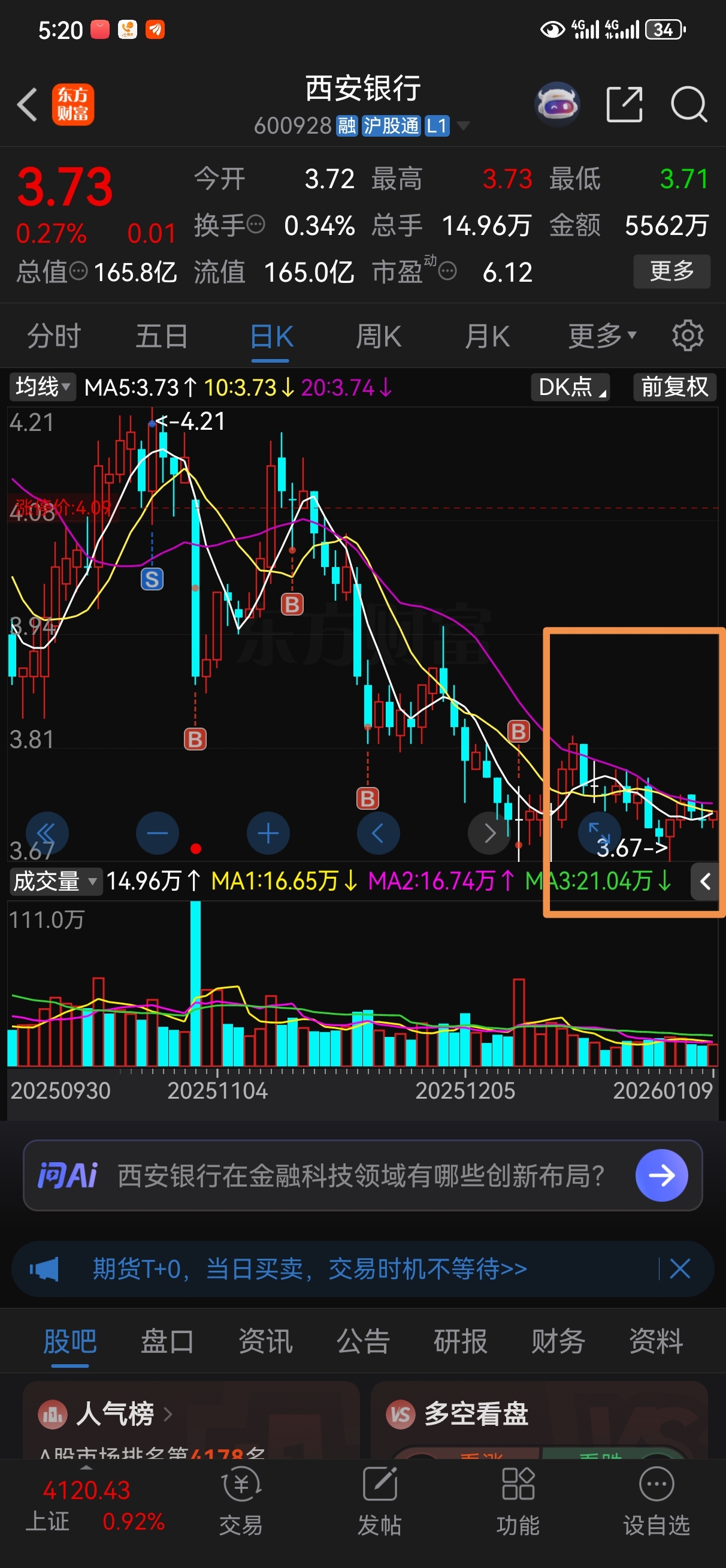 $西安银行(SH600928)$ 大盘16连阳西安银行的走势图