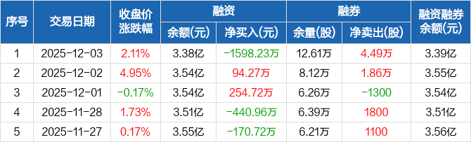 雪天盐业:融资净偿还1598.23万元,融资余额3.38亿元(12-03)