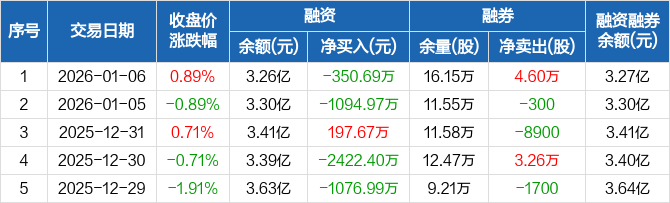 雪天盐业:融资净偿还350.69万元,融资余额3.26亿元(01-06)