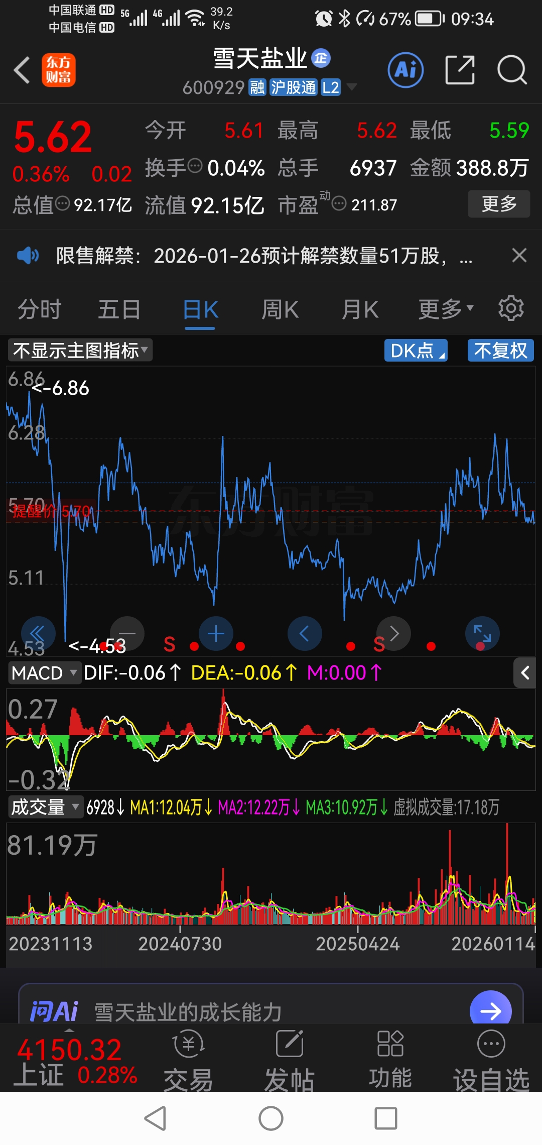 $雪天盐业(SH600929)$ 压力位站稳看多三天确认