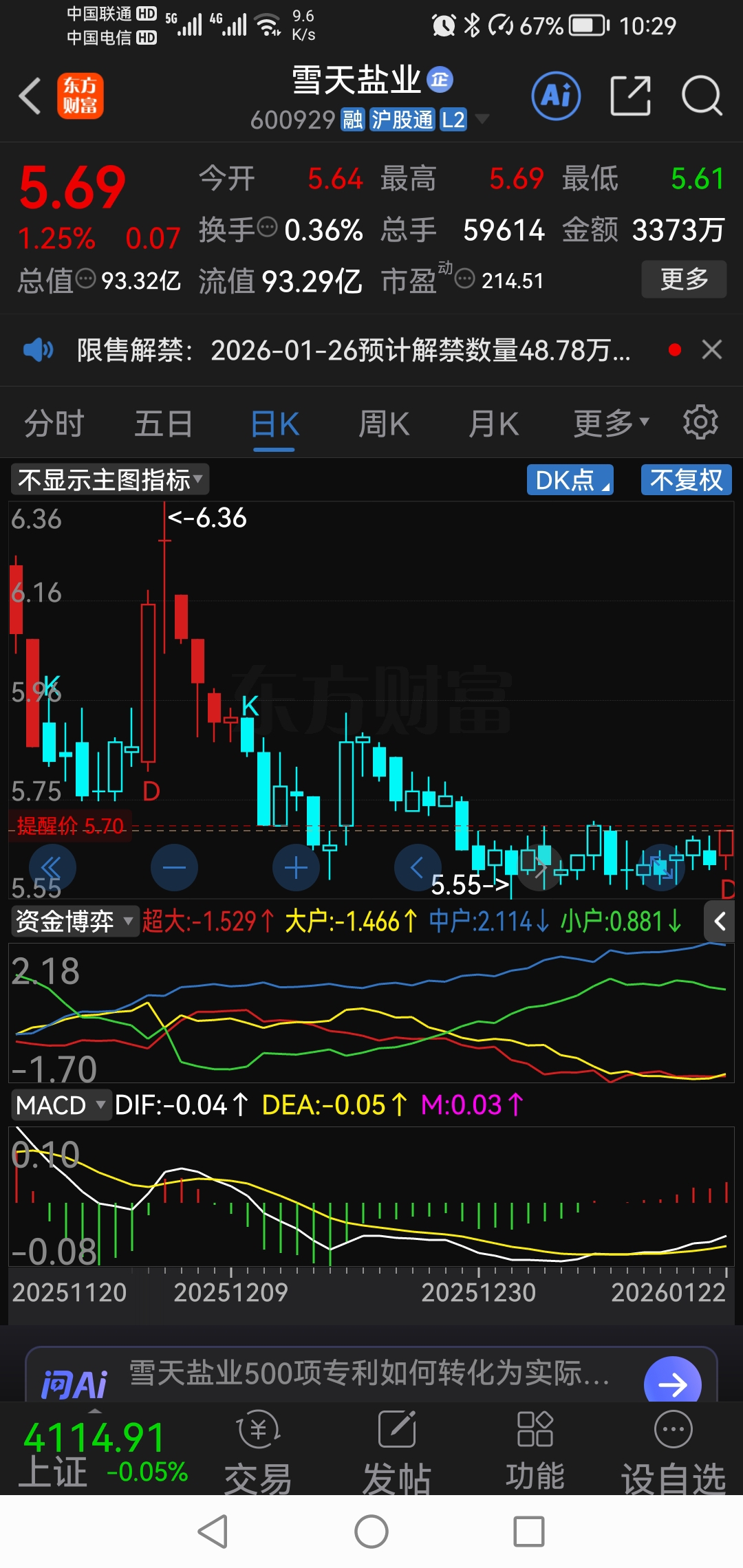 $雪天盐业(SH600929)$ 到了5.7下周干活了