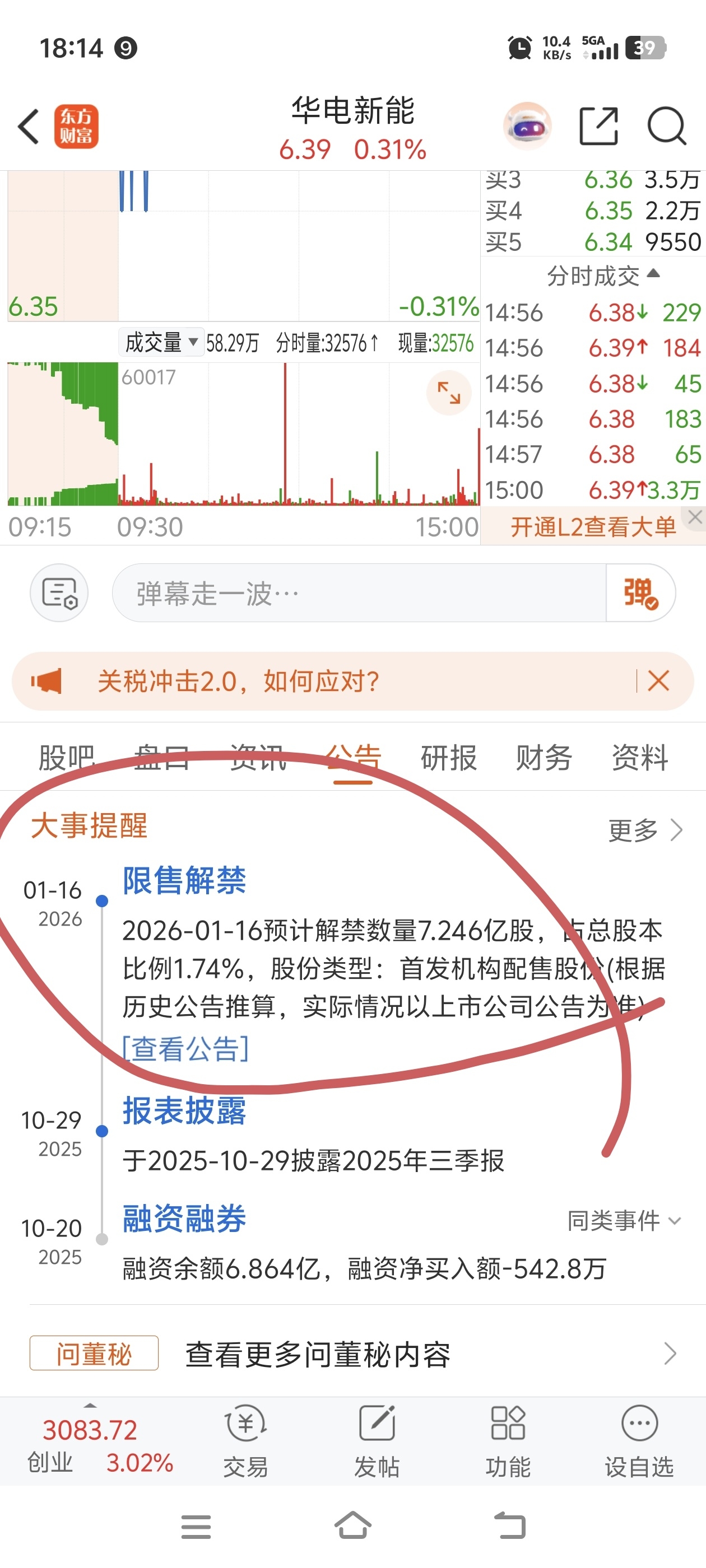$华电新能(SH600930)$ 不涨是因为没有解禁!