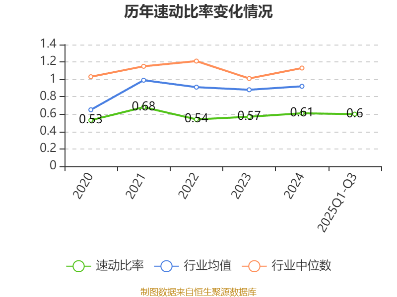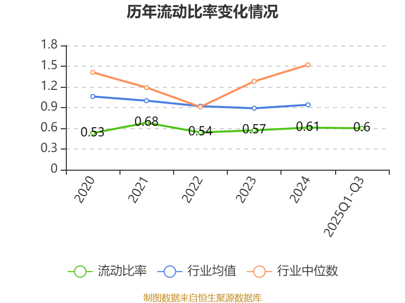 2025年前三季度,公司流动比率为0.6,速动比率为0.6。