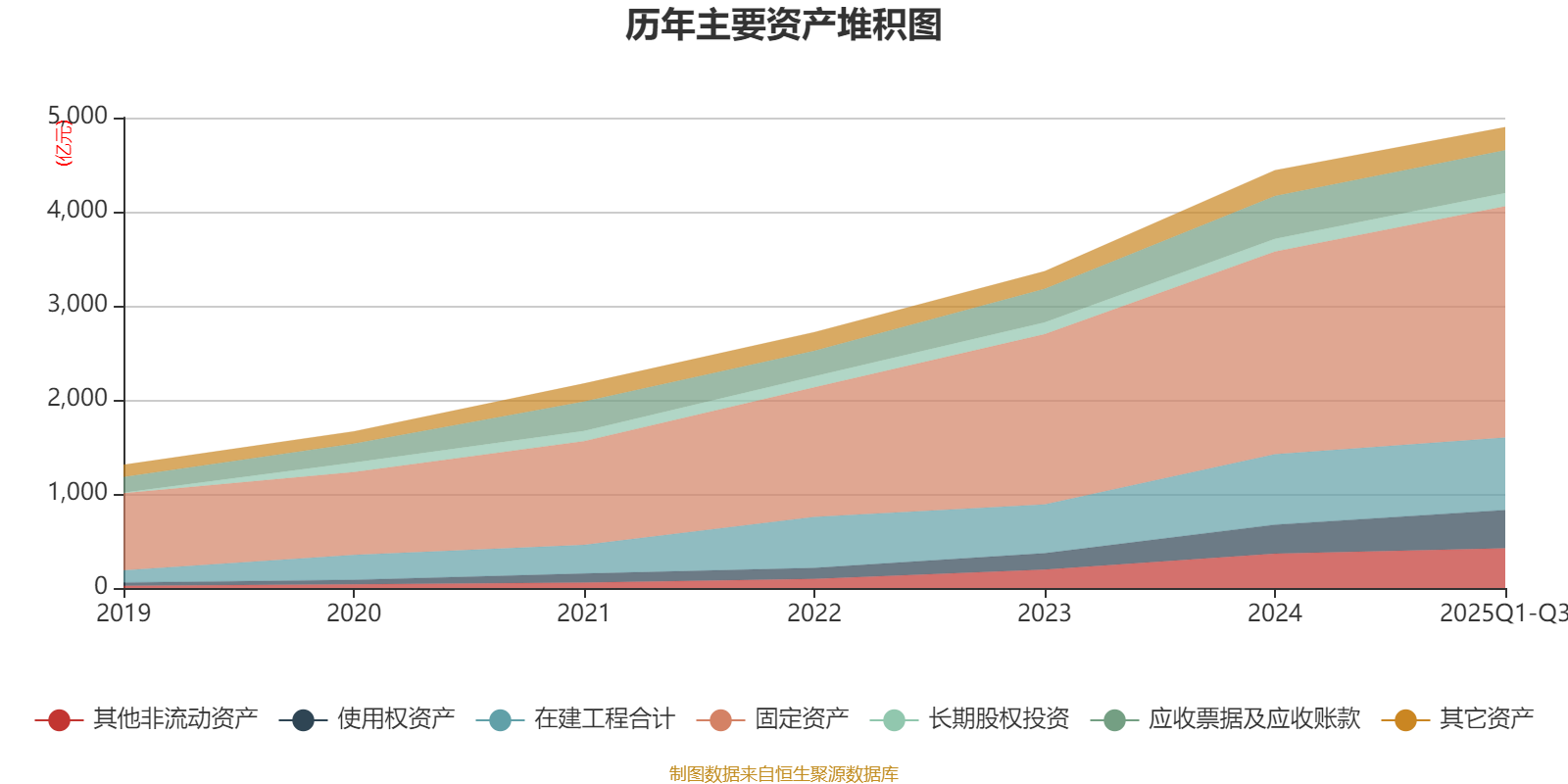 资产重大变化方面,截至2025年三季度末,公司固定资产较上年末增加14.2%,占公司总资产比重上升1.72个百分点;使用权资产较上年末增加32.51%,占公司总资产比重上升1.39个百分点;货币资金较上年末减少34.28%,占公司总资产比重下降1.21个百分点;在建工程合计较上年末增加2.64%,占公司总资产比重下降1.17个百分点。