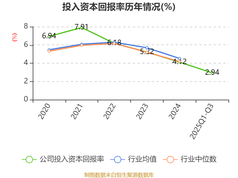 盈利能力方面, 2025年前三季度公司加权平均净资产收益率为7.82%。公司2025年前三季度投入资本回报率为2.94%,较上年同期下降4.78个百分点。