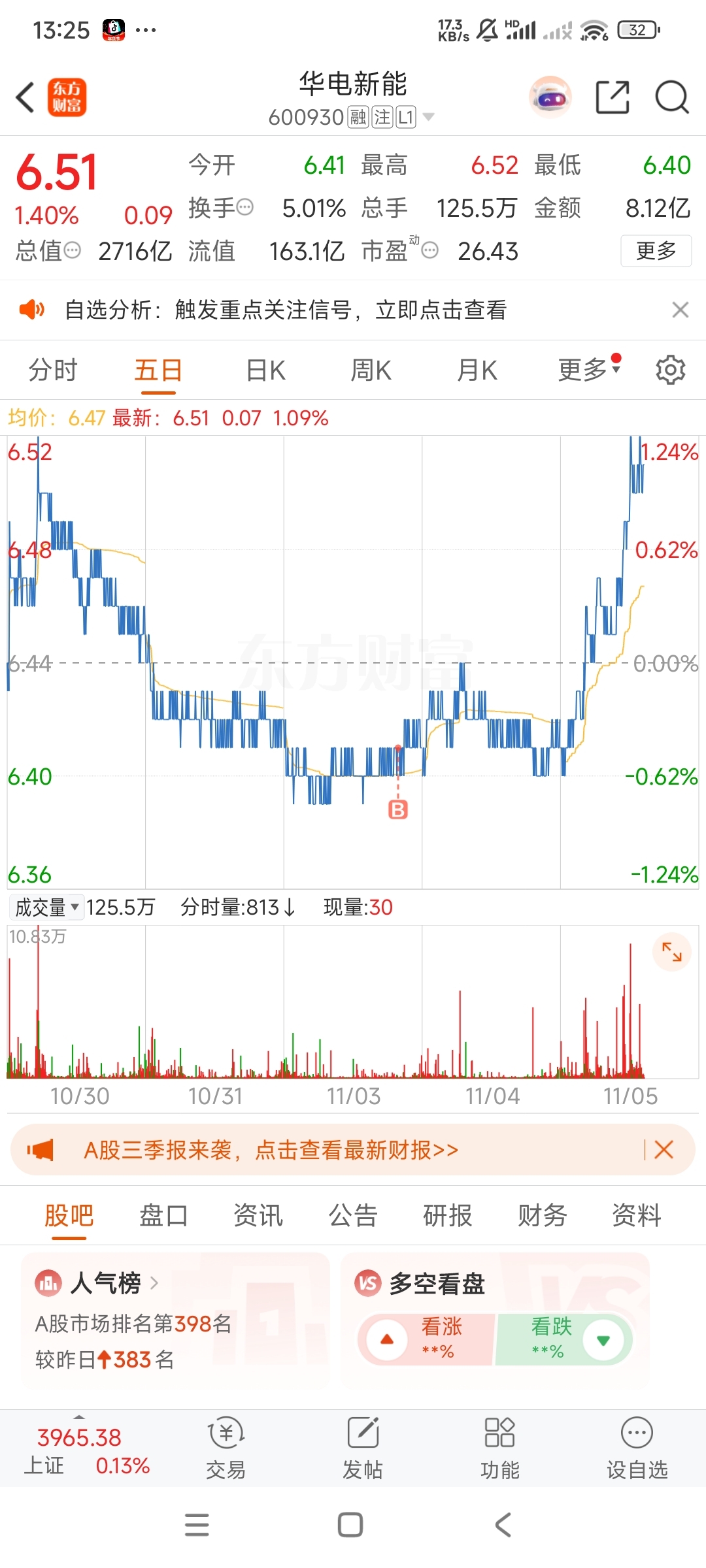 $华电新能(SH600930)$ 前天买的