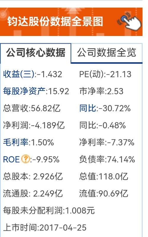 新能源股钧达股份亏损严重,目前股价40.33元!华电新能业绩优秀,目前股价仅6.