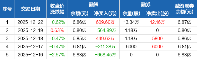 华电新能:融资净买入609.6万元,融资余额6.86亿元(12-22)