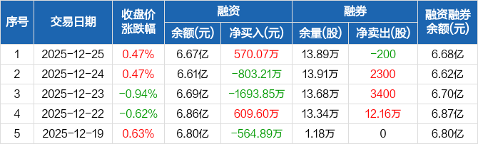 华电新能:融资净买入570.07万元,融资余额6.67亿元(12-25)