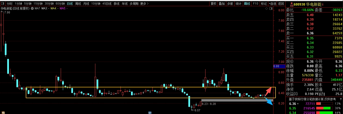 $华电新能(SH600930)$ 次新股,但走得比较弱,上市后回落下来,就没有再明显的上涨过,一直都是沿着一个小箱体横盘为主,中间虽然有过抽风式的大幅拉升,但最后都不了了之,节奏做反了,很容易一套就是很久,这种走势没必要参与,管住手。#炒股日记# #周度策略#