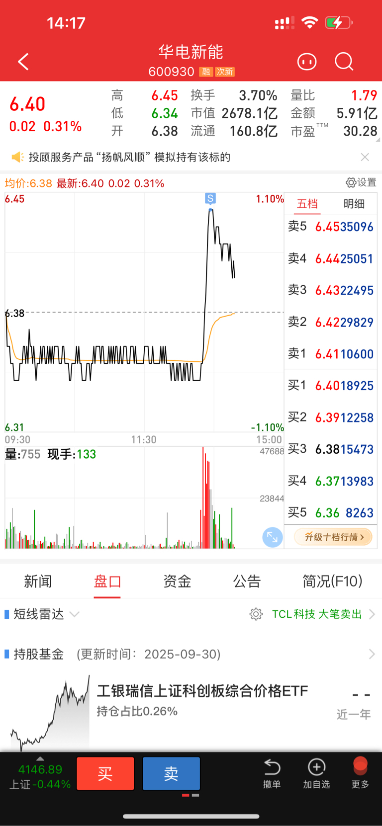 $华电新能(SH600930)$ 我6.44跑掉的,回来看看你们可好