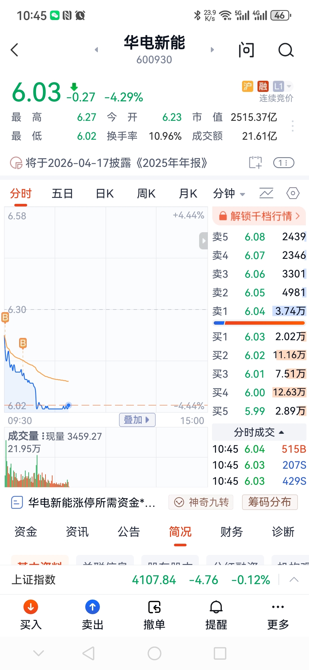 $华电新能(SH600930)$ 对不起大家,今天大跌应该就是我买的原因