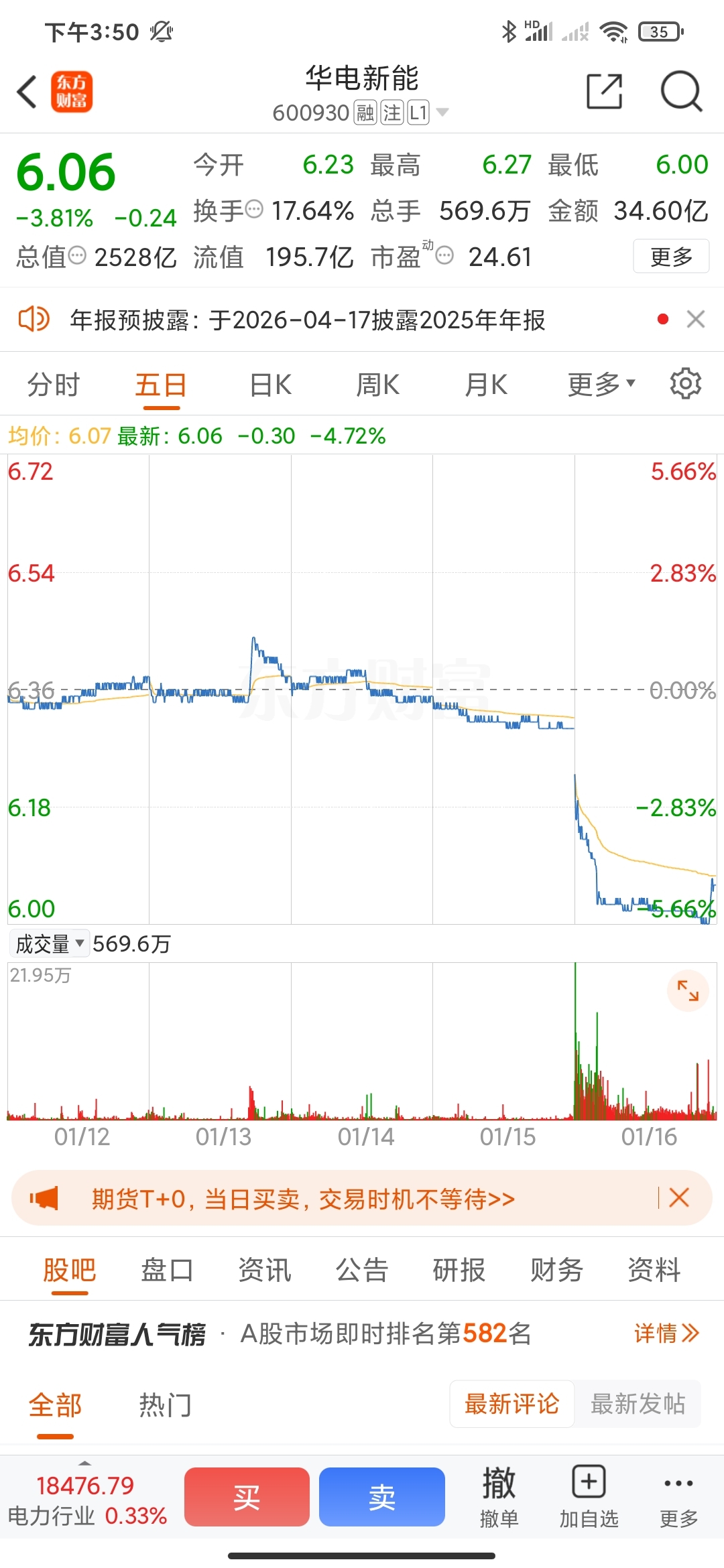 $华电新能(SH600930)$ 量比排行三。