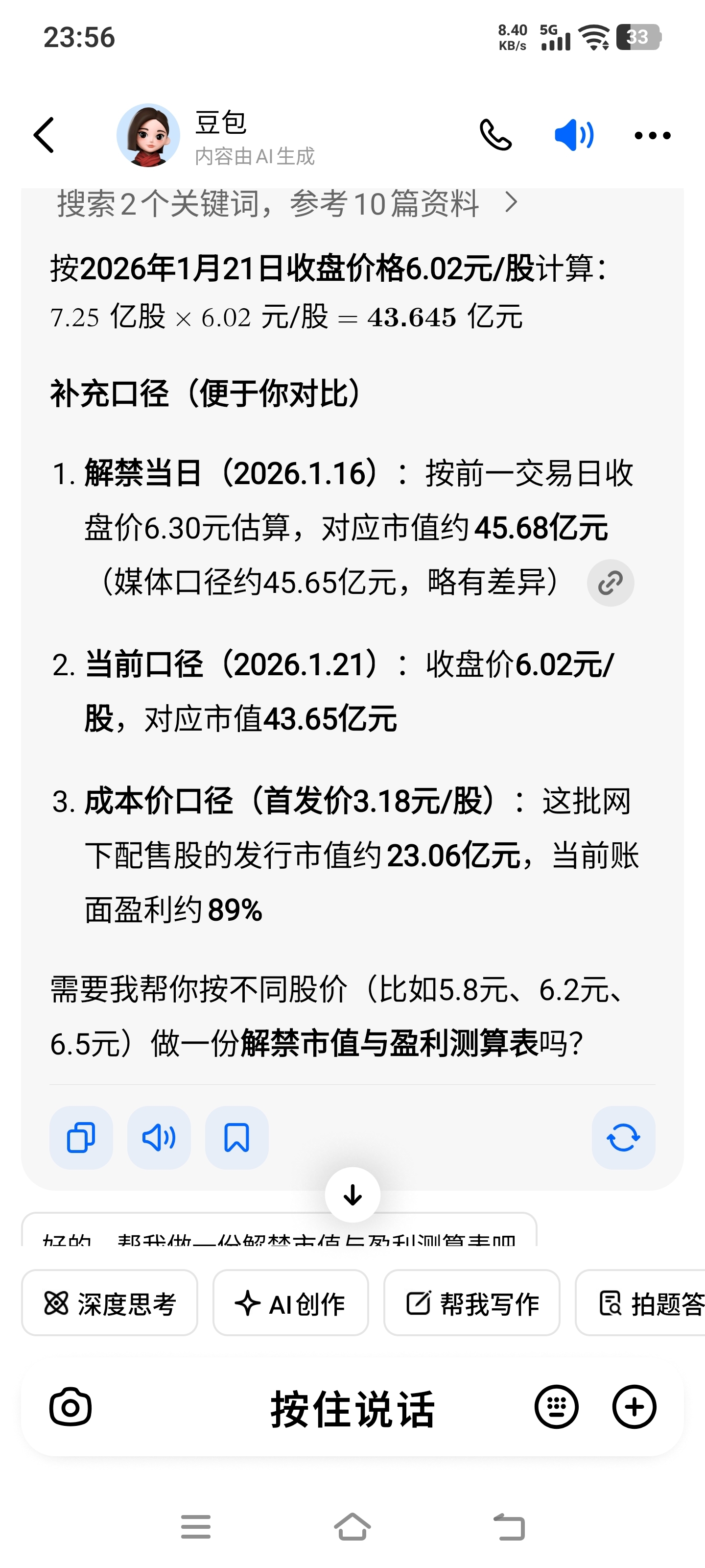 7.25亿解禁股市值45亿成本23亿一旦卖出会砸到5块吗