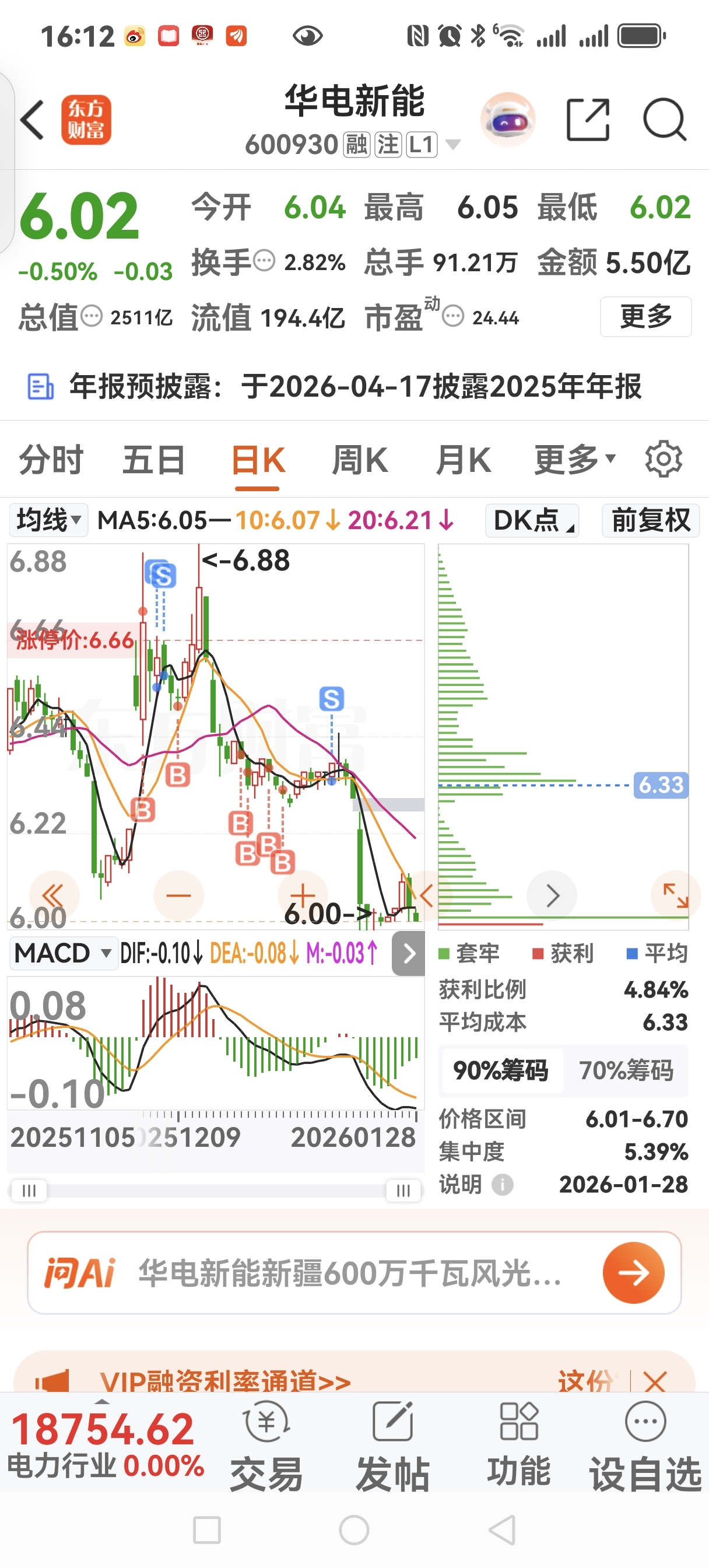 $华电新能(SH600930)$ 亏几百块跑了