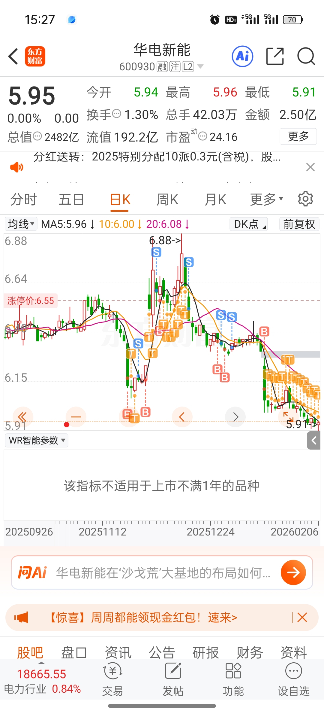 $华电新能(SH600930)$ 这个星期降了5分钱一股,成本来到了5.95元,算越额完成降低成本任务了。