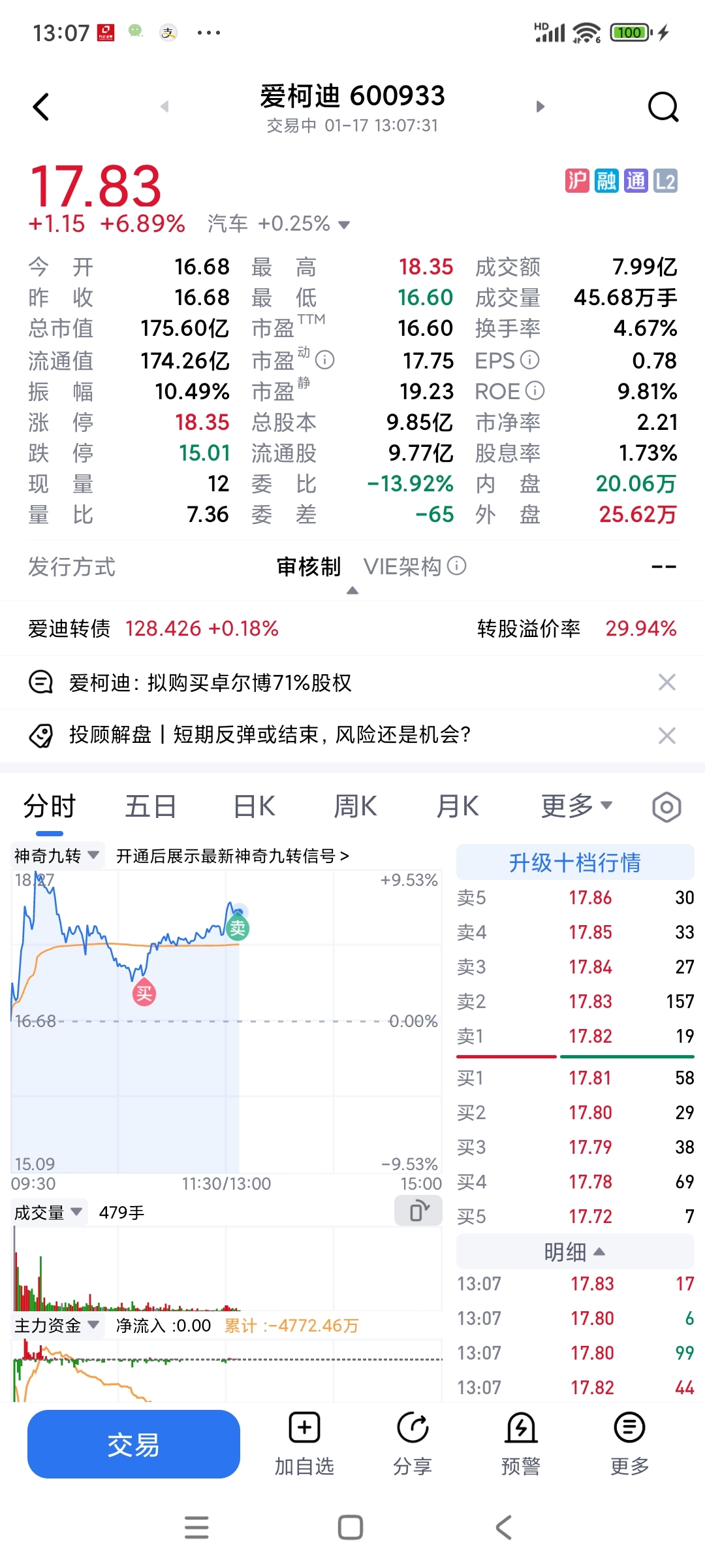 $爱柯迪(SH600933)$ 不满意啊,开盘八个点一直犹豫要不要T出去,后面一忙就忘了。