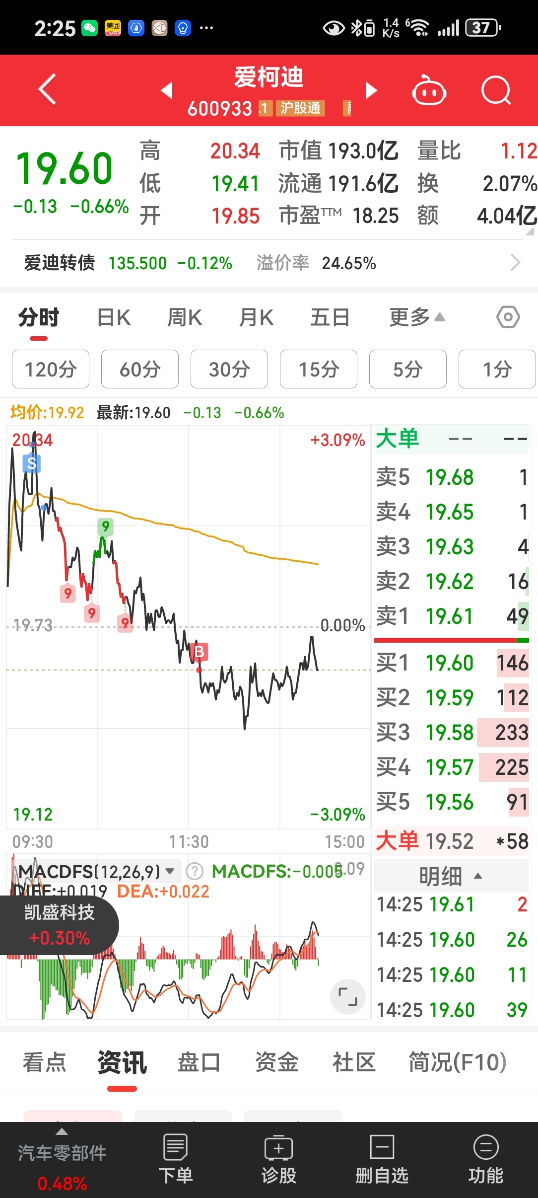 20.28,20.12卖了,19.6又接回,轻仓