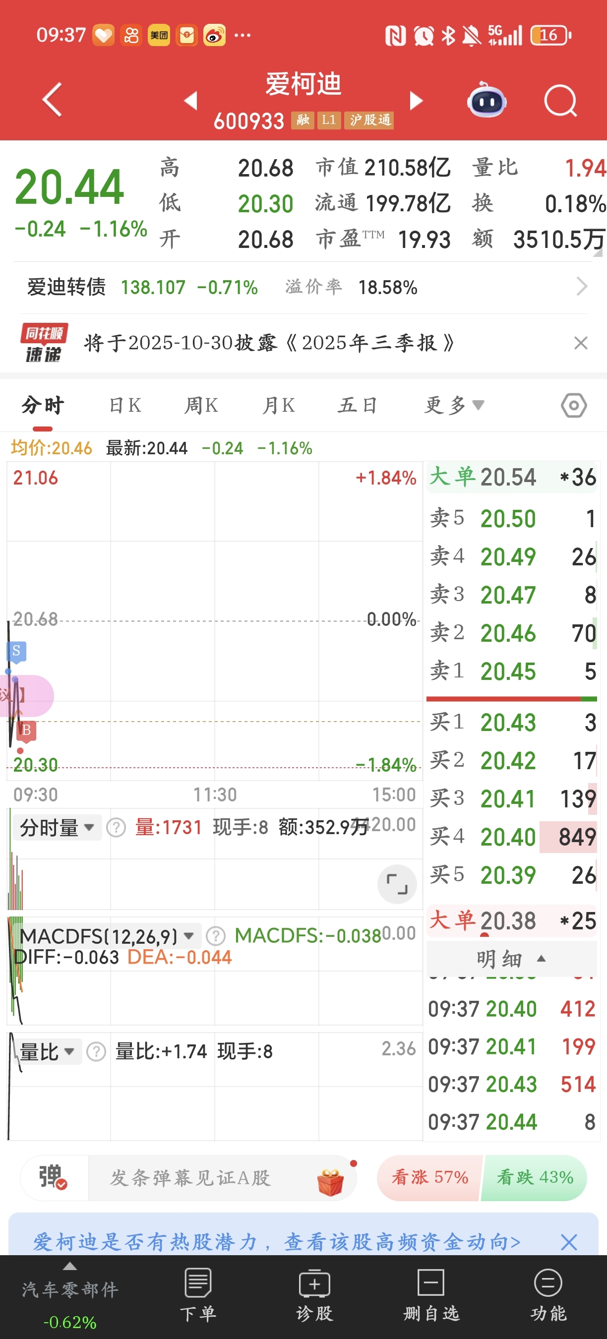 $爱柯迪(SH600933)$ 开盘没舍得买,喜欢跳水?