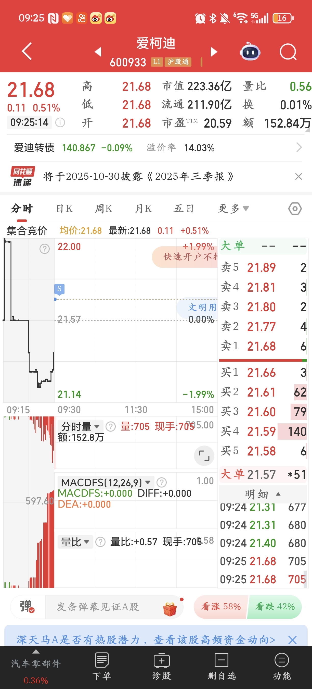 $爱柯迪(SH600933)$ 挂21.2出的,高开就是惊喜了