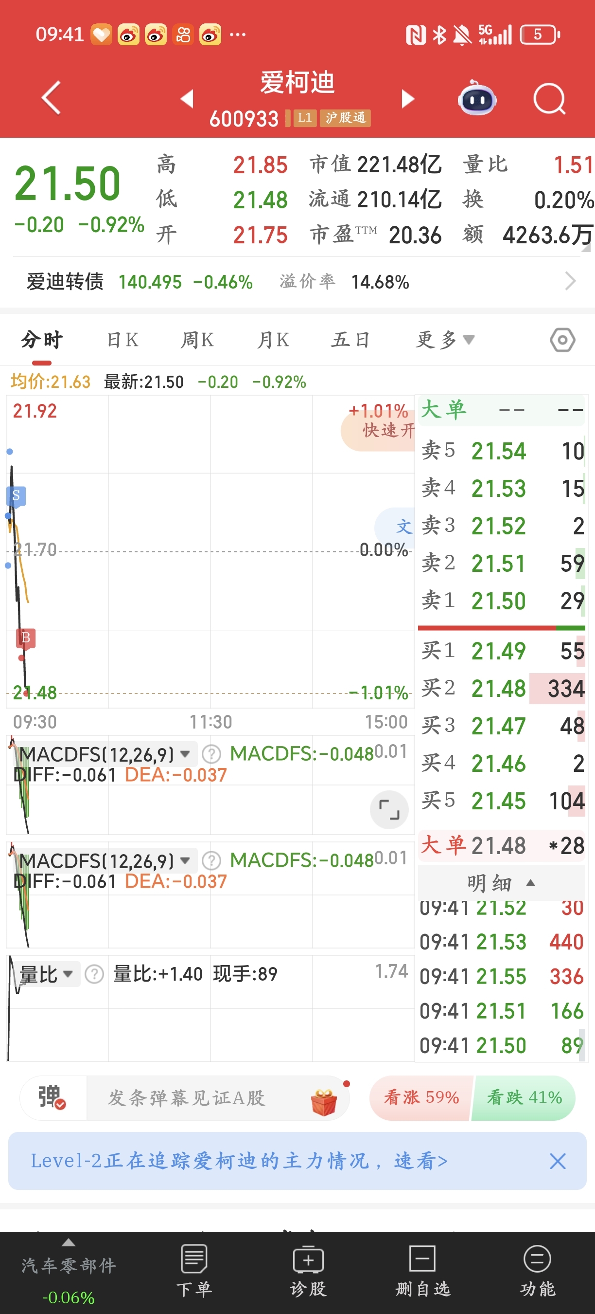 $爱柯迪(SH600933)$ 大盘太红了,今天不敢太贪心,T两毛五结束