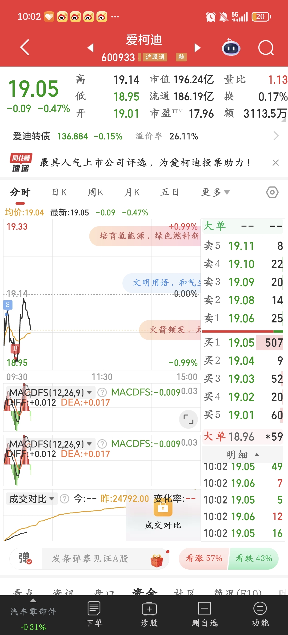 $爱柯迪(SH600933)$ 难顶,好久没吃过一个中阳线了啊