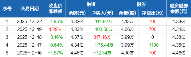 爱柯迪:融资净偿还114.82万元,融资余额4.32亿元(12-22)